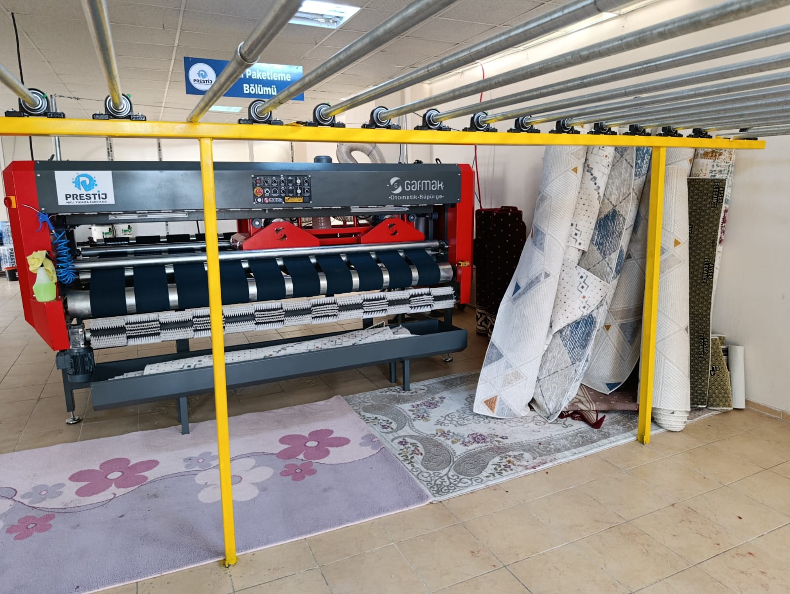 Beşinci alanımız; Halı Paketleme Bölümüdür. Bu bölümde; halılarda yıkama sonrası oluşan tüylenmeler, süpürme ve vakumlama özellikli tam otomatik makinemizde temizlenir. Otomatik parfümlenerek poşetlenir