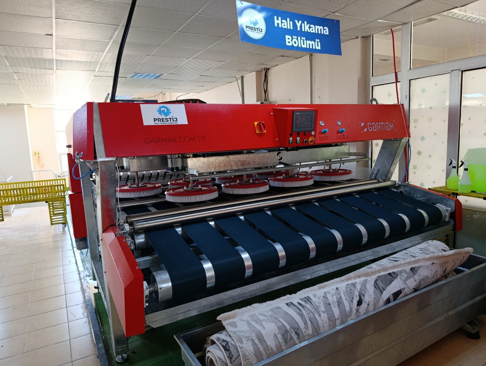 Üçüncü alanımız; Halı Sıkma Bölümüdür. Bu bölüm, yıkanan halıların tam otomatik makinede 1300 devir ile sıkılarak %95 oranında sudan arındırıldığı bölümdür